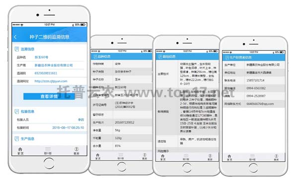 托普農作物種子二維碼標簽追溯系統(tǒng)web界面及手機APP: