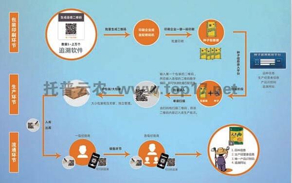 托普農作物種子二維碼標簽追溯系統(tǒng)流程: