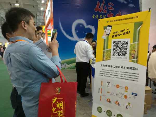 其中根據9月18日農業部辦公廳印發的《農作物種子標簽二維碼編碼規則》要求,推出的農作物種子二維碼標簽追溯系統,吸引了諸多專業客戶駐足。系統分為:包裝印刷環節、生產環節、流通環節、追溯環節等四個環節。操作靈活方便,可自動生產唯一性二維碼,品種和批次獨立管理,又相互關聯。消費者,執法者,經營者可通過手機二維碼獲得種子的品種信息、生產經營者信息、品識別碼、追溯網址等內容。許多客戶紛紛掃碼體驗,對系統的及時性和便捷性贊不絕口,部分客戶同公司營銷總監陳麗婷就系統的購買和使用問題進行交流,對托普云農在種業領域做出的成果給予肯定,希望托普云農可以推出更多符合市場需求的產品。