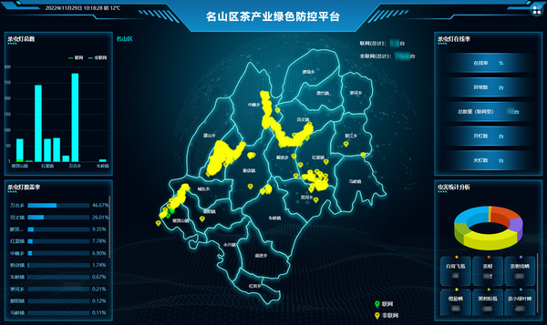 雅安名山位于成都平原西南邊緣,擁有茶園面積35萬畝左右,揚子江心水,蒙山頂上茶,千百年來被廣為傳頌。為進一步提質(zhì)增效,打造全國高品質(zhì)茶葉基地,打響蒙頂山茶品牌,雅安名山區(qū)目前已在核心區(qū)域布設(shè)天敵友好型茶園殺蟲燈900余臺,逐步完善茶園綠色防控體系的建設(shè),通過特制的LED誘蟲光源,針對茶園主要害蟲精準防控,大大減少茶園化學農(nóng)藥的施用次數(shù)和施用量,保障茶葉品質(zhì)及生態(tài)環(huán)境安全,實現(xiàn)綠色高質(zhì)量發(fā)展。