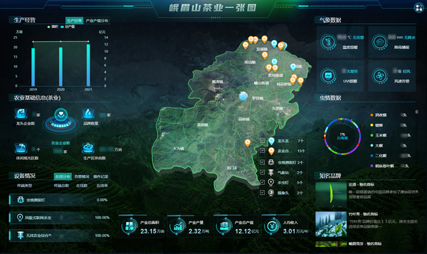 峨眉山茶始于西周,發(fā)乎于秦漢,盛名唐宋。近年來,峨眉山市國家農(nóng)村產(chǎn)業(yè)融合發(fā)展示范園堅持以茶葉為主導(dǎo)產(chǎn)業(yè),建設(shè)優(yōu)質(zhì)茶業(yè)基地,形成“園區(qū)+產(chǎn)業(yè)+旅游+文化”的茶產(chǎn)業(yè)模式。托普云農(nóng)以峨眉山茶產(chǎn)業(yè)基地為依托,布設(shè)蟲情、苗情、墑情、災(zāi)情監(jiān)測智能裝備,打造茶產(chǎn)業(yè)數(shù)字化平臺,涵蓋茶產(chǎn)業(yè)一張圖、生產(chǎn)綜合管理、市場行情監(jiān)測等內(nèi)容,打通從“茶園”到“茶杯”的全茶產(chǎn)業(yè)鏈,帶動農(nóng)戶走出一條可復(fù)制的增收之路。