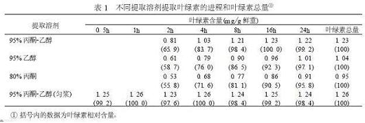 上圖是不同的葉綠素提取液在提取葉綠素時的進度,可以看出,差別還是挺大的。大家可自己比較下。從圖中我們可以發(fā)現(xiàn),95% 丙酮2乙醇(勻漿)的提取效果最佳,因此,我們在進行葉綠素含量測定的時候,可以考慮運用95% 丙酮2乙醇(勻漿)作為提取液。