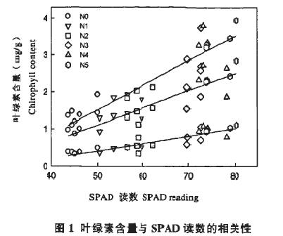 SPAD值與全氮含量的關(guān)系植物成熟葉片全氮含量隨著施氮量提高而增加,施氮水平在N3以下時,全氮含量增加較多,施氮水平超過N3時,增加幅度減小。植物成熟葉片的SPAD值和全氮含量成極顯著正相關(guān),全氮含量高,SPAD值大。成熟葉片SPAD讀數(shù)隨著生長季節(jié)變化,在不同采樣時期內(nèi)的測定有所不同。通常植物季節(jié)性換葉發(fā)生在5月中下旬,此時由于新葉尚處于快速生長和成熟階段,葉綠素含量較低,SPAD值也處于較低水平。盡管如此,葉片氮素含量與SPAD讀數(shù)之間仍存在著極顯著正相關(guān)關(guān)系,只是二者的數(shù)學關(guān)系式因采樣時間不同而有所差異。