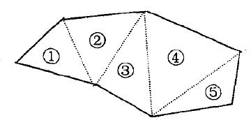 當測區(qū)的形狀為矩形時,只需測量長與寬進而求得面積。如果測區(qū)的形狀為非矩形的不規(guī)則多邊形,需將測區(qū)分割成許多三角形,如圖1測量每個三角形的邊長,算出每個三角形的面積,將所有三角形面積累加就得到測區(qū)土地的面積。已知三邊計算三角形面積的公式為:S= √ p (p-a)(p-b)(p-C)。(1)其中:a,b為三邊長,p為三角形的半周長。