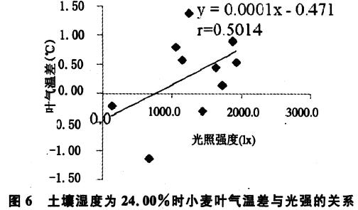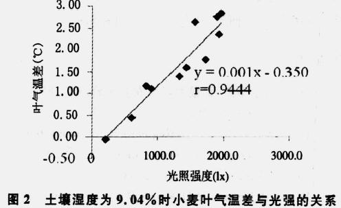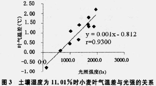 不同土壤濕度下小麥葉氣溫差對光照強度的反應及對蒸騰的影響