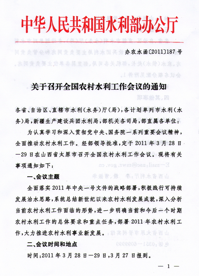 您現在的位置:中國農業儀器網 > 行業動態 >關于召開全國農村水利工作會議的通知