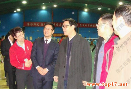 梁田庚司長蒞臨“托普儀器”杯羽毛球賽現場開拍