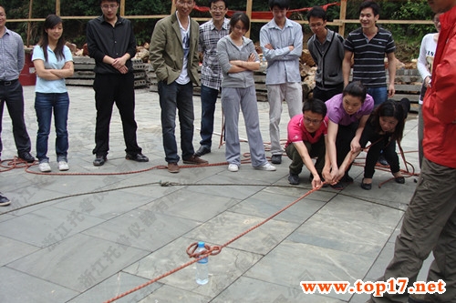 為了豐富我們的白龍潭之行,同時也為了挑戰和考驗托普人的堅強意志,我們一共開展了四個拓展訓練項目:雷區取水、極速60秒、挑戰五分鐘、畢業墻。到達目的地之后,拓展教練迅速將我們以20—30人為一隊組織團隊,每個團隊起了一個彰顯自己個性的響亮隊名:神龍隊,工兵隊,狼牙隊,亮劍隊,并設計了隊旗、隊徽,自編了隊歌,確定了口號。響亮的口號響徹整個白龍潭,更加增強了隊員們的士氣和團隊凝聚力。