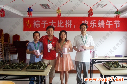 2012年6月9日,為喜迎即將到來的端午佳節,活躍公司文化氛圍,體現浙江托普儀器公司工會對員工的關愛,圍繞“粽子大比拼,歡樂端午節”這一主題,工會舉辦了包粽子比賽等一系列活動,并為大家準備了精美的禮品。活動現場用香包進行點綴,不僅漂亮,更是香氣宜人,增加了節日氣氛。公司領導朱旭華經理、張貴友經理、陳麗婷經理也前來參加此次活動。