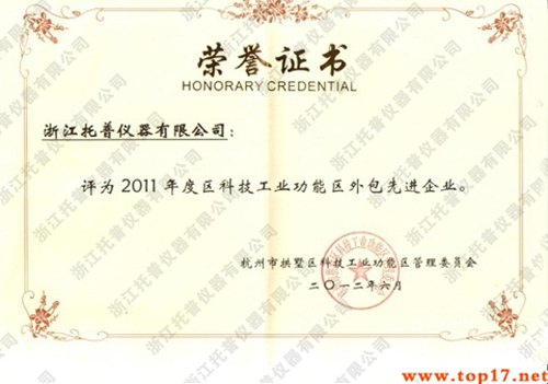 熱烈祝賀浙江托普儀器有限公司被評為2011年度區(qū)科技工業(yè)功能區(qū)外包先進(jìn)企業(yè)!