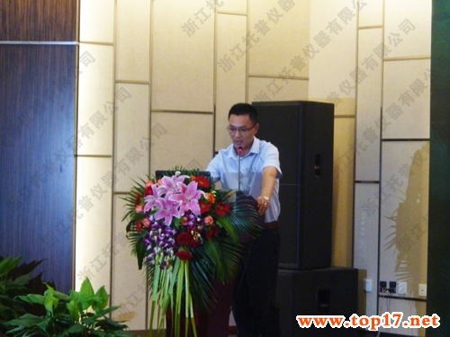 圖為:托普儀器陳渝陽總經(jīng)理作為企業(yè)代表在會上做詳細(xì)報(bào)告