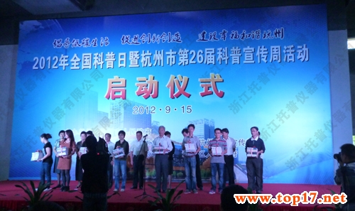 啟動儀式上,與會領導向2010-2011年度杭州市科普工作先進集體和先進工作者代表頒獎,向2012年杭州市科普文明示范單位授牌,并向社區居民代表贈送了科普資料。