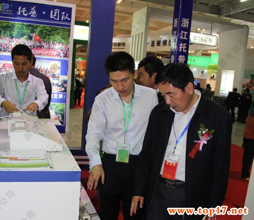 圖為:全國(guó)農(nóng)技推廣中心杭大鵬書記等領(lǐng)導(dǎo)參觀公司展位