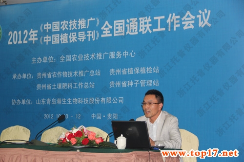 托普儀器陳渝陽(yáng)總經(jīng)理應(yīng)邀參加了此次會(huì)議。會(huì)議上,陳總經(jīng)理講到:作為《中國(guó)農(nóng)技推廣》2012年度副理事長(zhǎng)單位代表,托普儀器一直在積極推進(jìn)農(nóng)業(yè)技術(shù)基層推廣與宣傳。由托普儀器自產(chǎn)的土壤養(yǎng)分速測(cè)儀、土壤墑情速測(cè)儀、農(nóng)藥殘留速測(cè)儀、自動(dòng)蟲(chóng)情測(cè)報(bào)燈、孢子捕捉儀、殺蟲(chóng)燈等廣泛應(yīng)用于今年啟動(dòng)的《基層農(nóng)技推廣服務(wù)體系建設(shè)項(xiàng)目》,同時(shí)托普儀器在此刊內(nèi)適時(shí)發(fā)表一些應(yīng)用于農(nóng)技推廣建設(shè)的先進(jìn)技術(shù)的文章,與同行、客戶共享。陳總經(jīng)理表示:托普儀器將利用高科技人才和先進(jìn)技術(shù)進(jìn)一步致力于植保產(chǎn)品以及農(nóng)業(yè)儀器的開(kāi)發(fā)與推廣,為中國(guó)農(nóng)技推廣增添新的力量。