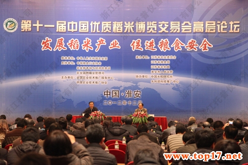 2012年12月10日,第十一屆中國(guó)優(yōu)質(zhì)稻米博覽交易會(huì)高層論壇在淮安舉行,全國(guó)人大農(nóng)業(yè)與農(nóng)村委員會(huì)副主任委員、中國(guó)農(nóng)業(yè)技術(shù)推廣協(xié)會(huì)尹成杰會(huì)長(zhǎng);中國(guó)工程院院士、中國(guó)農(nóng)科院副院長(zhǎng)劉旭;中國(guó)水稻研究所稻作中心朱德峰主任;國(guó)際水稻研究所Grant Robert Singleton博士;沈陽農(nóng)業(yè)大學(xué)農(nóng)業(yè)部重點(diǎn)實(shí)驗(yàn)室副主任、副教授馬殿榮;黑龍江省農(nóng)科院食品加工研究所盧淑雯所長(zhǎng)等六位專家來賓做了精彩的報(bào)告。淮安市委副書記練月琴;淮安市人大常委會(huì)李冰副主任出席論壇。