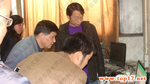 圖為:托普工作人員在演示自動(dòng)控制系統(tǒng),右二為戴守勤副處長(zhǎng)