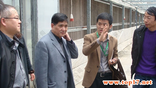圖為:托普工作人員在介紹通過(guò)網(wǎng)絡(luò)來(lái)控制種植大棚里的各項(xiàng)指標(biāo),右二:戴守勤副處長(zhǎng)