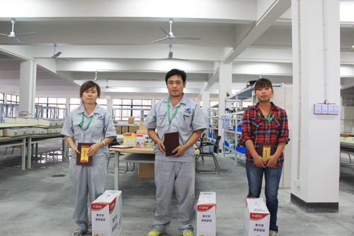 比賽結束后,公司領導為獲獎選手頒發了榮譽證書及獎品,要求他們要把現在的技能保持并增長下去,并且和同事溝通交流工作技巧和工作經驗,為公司生產提高效率,提升品質做出貢獻。