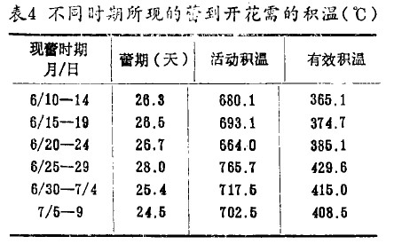 例:有岱紅岱和米努非兩品種要配對制種,以利用其雜種優勢,若米努非決定4月10日柿種,為了使兩品種花期相遷,岱紅岱應在何時怖種?從2可知米努非從柿種到開花所需大于I2℃的有效積溫為64.0十394.9+750.6=,209.5C,岱紅岱為55.0+555.5+389.5二1,000,又據當地5,6兩月長期天氣預報日平均氣溫為23.8,即可根據上述公式首先預測米努非開花期,再根據米努非開花期預測岱紅岱的播種期。米努非開花期予測如下: