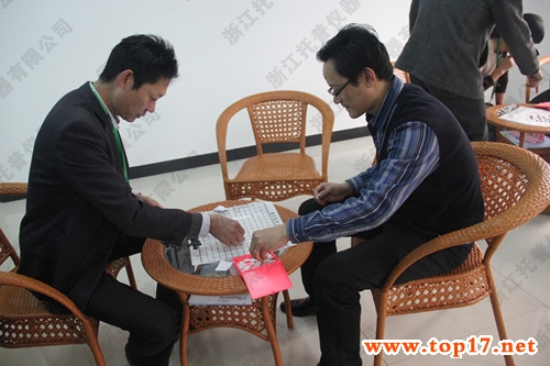 圖為:托普儀器張總和羅經(jīng)理正在進行五子棋的比拼