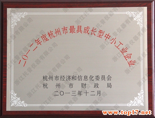 托普儀器榮獲2012年度杭州市最具成長(zhǎng)型中小工業(yè)企業(yè)獎(jiǎng)勵(lì)