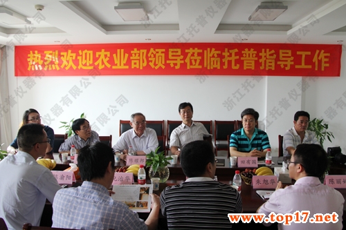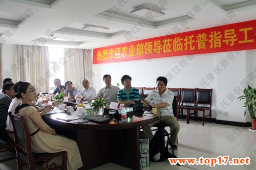 2014年7月5日,農業部原部長、中國農技推廣協會名譽會長陳耀邦一行在浙江省農業廳相關領導的陪同下,蒞臨托普儀器開展調研活動。在詳細了解托普儀器發展現狀、未來規劃之后,調研組與托普儀器管理高層召開了座談會。