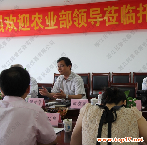 7月5日,農(nóng)業(yè)部原部長、中國農(nóng)技推廣協(xié)會(huì)名譽(yù)會(huì)長陳耀邦、全國農(nóng)技推廣中心副主任、中國農(nóng)技推廣協(xié)會(huì)秘書長謝建華一行,蒞臨浙江托普儀器有限公司進(jìn)行調(diào)研。