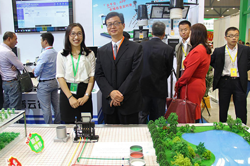 雙交會(huì)期間,全國農(nóng)業(yè)技術(shù)推廣服務(wù)中心陳生斗主任、謝建華副主任一行蒞臨托普云農(nóng)展區(qū),觀摩了公司展出的水肥一體化智能監(jiān)控系統(tǒng)和土壤墑情監(jiān)控預(yù)警平臺(tái)與設(shè)備,并且與托普云農(nóng)營銷總監(jiān)陳麗婷親切交流。