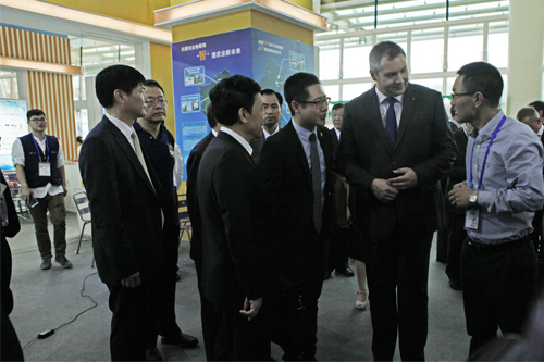 農交會期間,農業部余欣榮副部長、農業部市場與經濟信息司王小兵副司長一行蒞臨托普展區參觀指導。余副部長表示,農業物聯網技術應用除了現有的系統及硬件以外,還要與射頻技術緊密結合,提高物聯網的科技含量。屈冬玉副部長和斯洛文尼亞副總理一行也蒞臨托普展區,并與陳渝陽總經理親切交談。雙方就農業物聯網的研發推廣以及落地應用等問題進行交流。