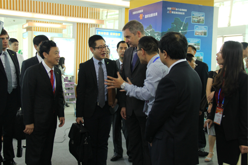 11月7日下午,在第十三屆中國國際農產品交易會期間,農業部屈冬玉副部長和斯洛文尼亞副總理一行蒞臨托普展區,參觀托普云農農業物聯網系統及硬件設施,并就農業物聯網的研發推廣以及落地應用等問題與陳渝陽總經理、朱旭華副總經理進行交流。