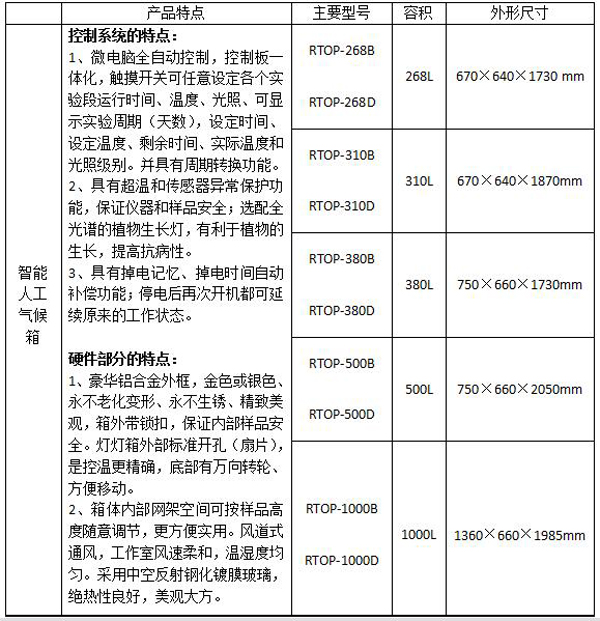 光照強(qiáng)度可按用戶要求定制,每種型號后面的B代表晝夜兩個溫度、濕度、時間段;D代表1-30個溫度、濕度、時間、光照段,自由組合工作,周期顯示、光照級別顯示,可根據(jù)用戶要求增加光照強(qiáng)度,光照自動可選,例:種子發(fā)芽可選3500LX;幼苗生長可選5500LX。智能高級型要加計算機(jī)接口用電腦控制每臺加1000元(定貨前通知),智能高級型人工氣候培養(yǎng)箱(主要部分采用進(jìn)口配件)。