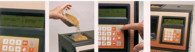 1.待測谷物倒入漏斗; 2.按進樣鍵,自動進樣 ; 3.儀器測試并顯示結果;
