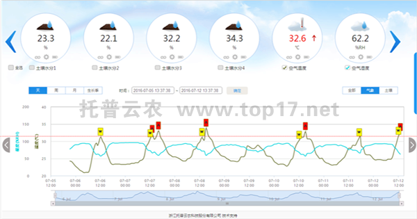 可選擇種植地塊、作物、傳感器、圖表展示、數字列表展示,還可選擇時間段(最近一天、一周、一個月);