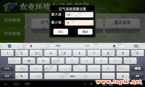 3、用戶可為設備配置傳感器報警條件,預置若干常用的農作物的報警配置。
