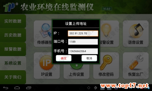 IP設置:設置數據上傳服務器的IP地址,手機號為找回密碼用的手機號。