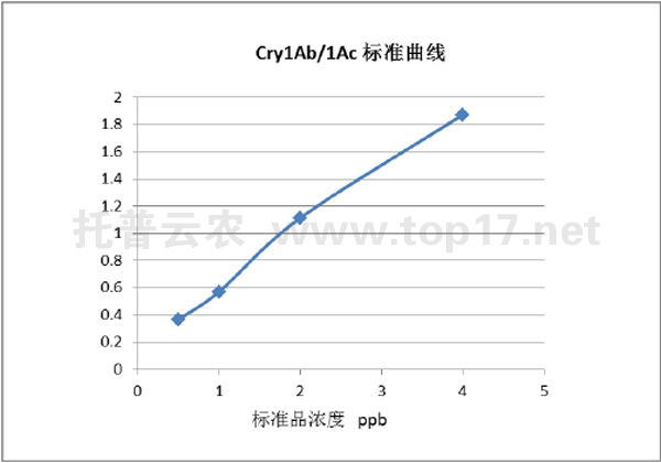 本品系用特異性抗 Cry1Ab/1Ac 單抗包被的微孔板和酶標(biāo)記抗 Cry1Ab/1Ac 單抗,雙抗體夾心法檢測 Cry1Ab/1Ac 基因表達(dá)產(chǎn)物,可以高靈敏度和特異性的檢測轉(zhuǎn)基因植物中的 Bt-Cry1Ab/1Ac 蛋白。